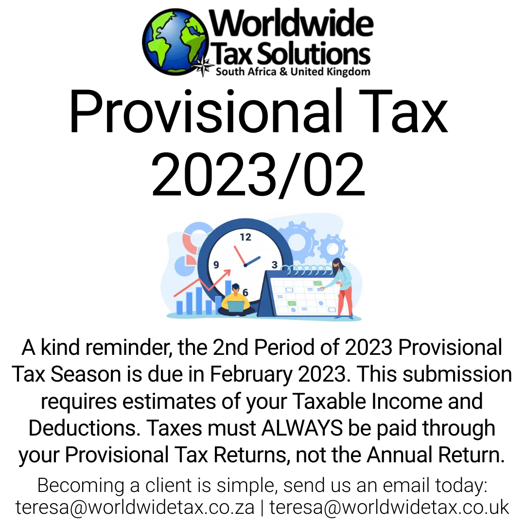 24/01/2023 | WWTS | 0 Comments | Social Media Newsletters Provisional Tax Reminder for 2023/02 – Estimations are Acceptable: